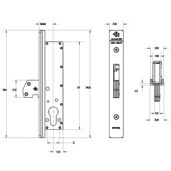 Adams Rite 2600 Sentinel Euro Hookbolt Case for Metal Doors