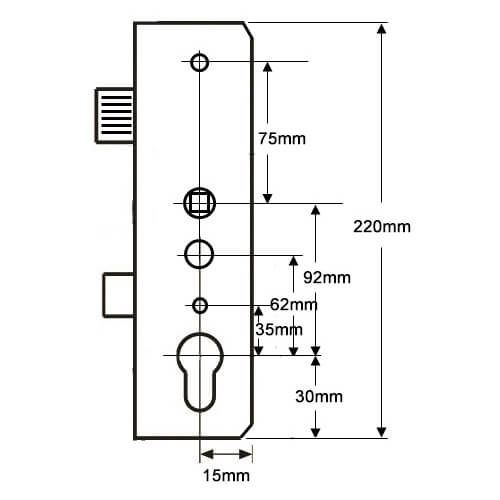 These gearboxes are available as a double spindle, with centres at 92mm and 62mm. They can therefore be used with a double spindle night latch functionality (often used on front doors) or standard lift lever, using the top spindle only (commonly used on back doors). The spindles feature a unique cross shape but accept a normal 8mm spindle.