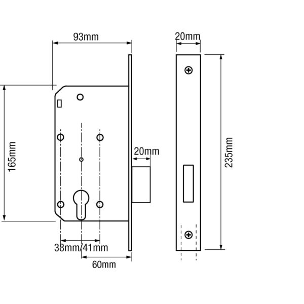 Briton 5410 euro mortice deadlock case. Backset 60mm, PZ centres 72mm. Radius and square forend available.