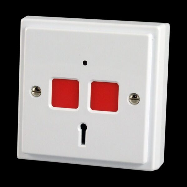 The original electronic Hold-up device is still available. This is a flush – fitting Hold-up device which means that the device can be mounted in a standard UK gang box, thanks to its flat face and recessed buttons.