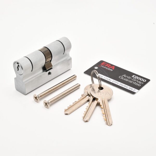The ERA Invincible cylinder is only compatible with ERA Invincible Multipoint door locks. It has a patented protected design that completely removes the ability to break into a cylinder. With a newly designed robust ‘squared’ off platform that significantly strengthens the mechanism against attack, customers will be able to use this as a true unique selling point.