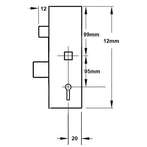 ERA Vectis multipoint door lock gearboxes are very distinctive, with a square design and no corner cut-outs. The big give away is the UK key way, designed to accept a traditional mortice key. The overall length of the gearbox is 221mm and the width is the backset plus 18mm.