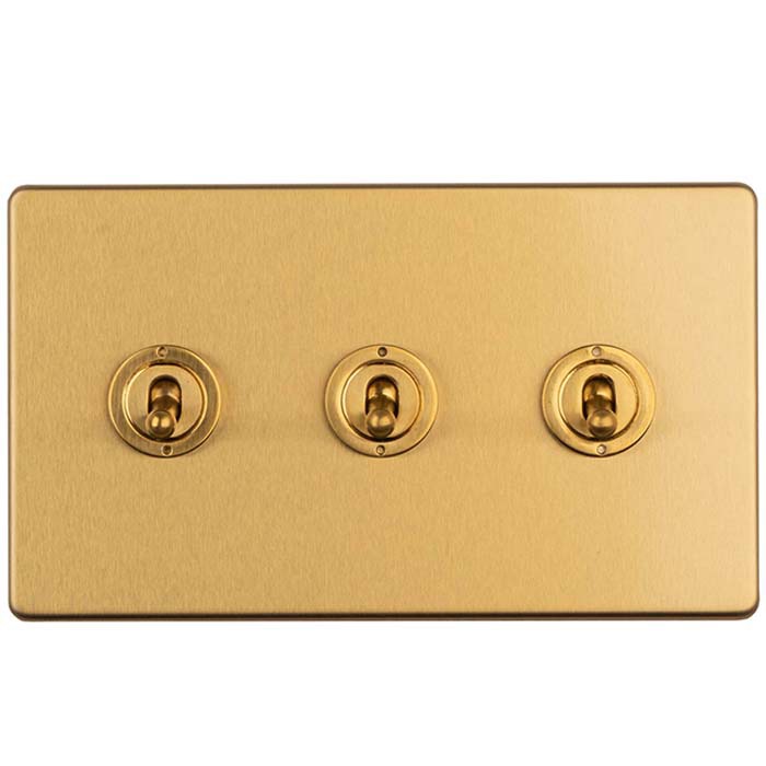 3 Gang 10Amp 2Way Toggle Switch Satin Brass Plate