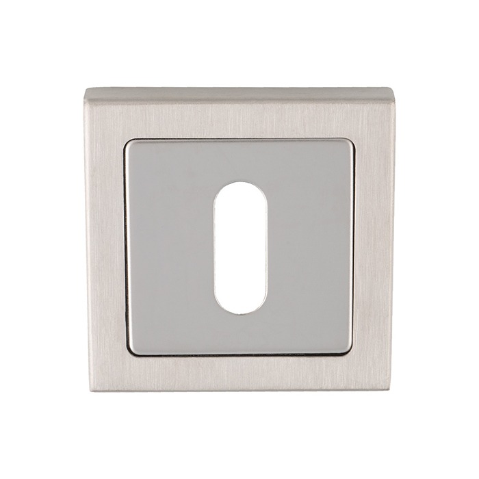 Euro Profile two part concealed fix square escutcheon. Matches all the square themed designer lever handles in the SSL range. Fire door rated. Suitable for domestic and commercial use. Supplied with both a duo and satin inner to allow for a single o