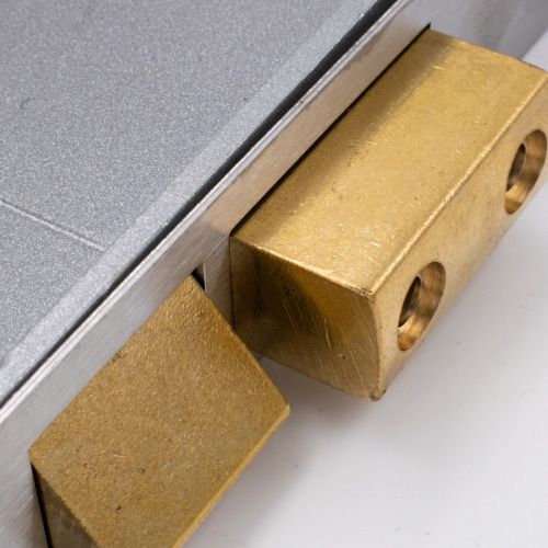 The brass deadbolt contains hardened steel rollers to help prevent against hacksawing.