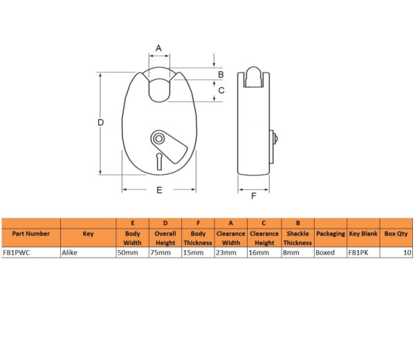 The FB1 is a UK Fire Brigade approved 2 lever padlock with a 50mm galvanised body and 8mm shackle, which suits a variety of applications and can be secured in place using the attached 400mm chain.