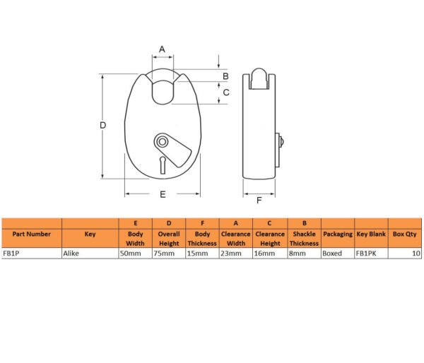 The FB1 is a UK Fire Brigade approved 2 lever padlock with a 50mm galvanised body and 8mm shackle, which suits a variety of applications.