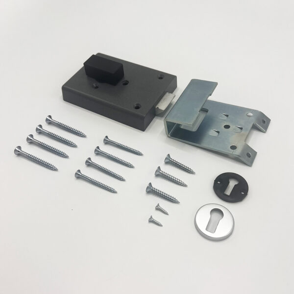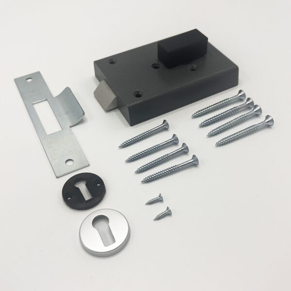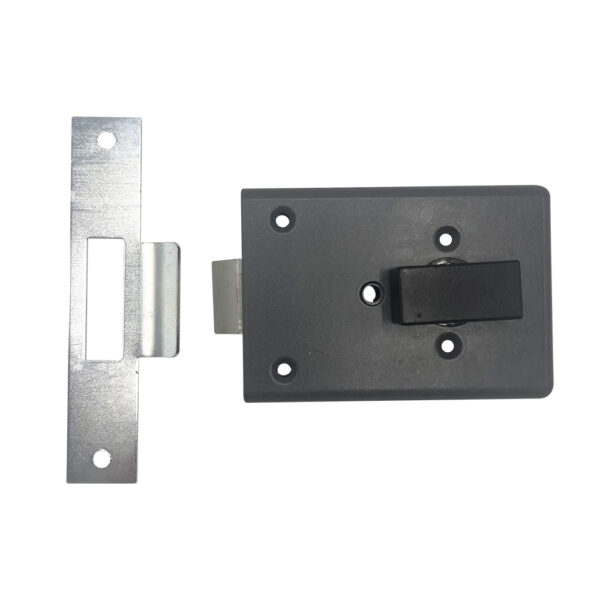 The latch is withdrawn with the key from the external side of the door and a turn knob from the inside.