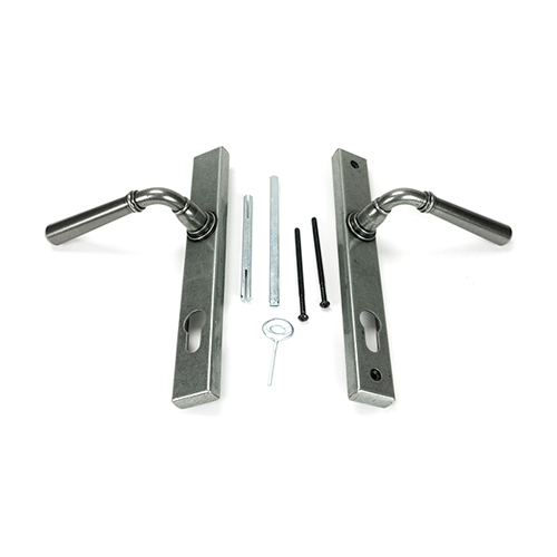 Set includes two lever espag lock handles (one internal and one external). Suitable for use with a multi-point lock or French door kit in conjunction with a euro cylinder. Supplied with matching SS bolt through fixings.