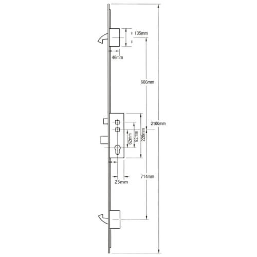 Fullex XL Latch 3 Hooks 2 Anti Lift Pins 2 Rollers Lift Lever Multipoint Door Lock – Option 1