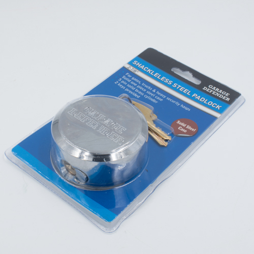 Garage defender with padlock.