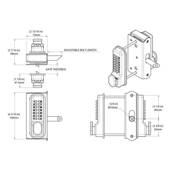 - Adjustable latch bolt – adjust the latch bolt in length for a precise fitting to your wooden gate