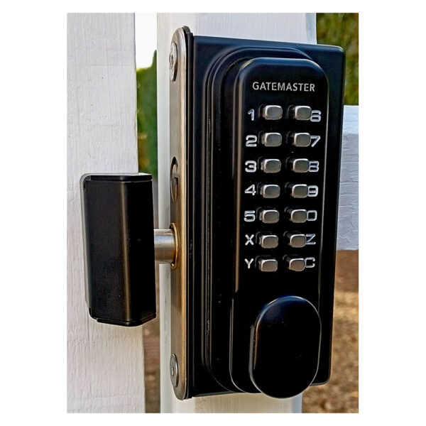 - Auto-latching – close the gate and the latch bolt latches into the gate frame. To open the gate, enter the code and turn the handle