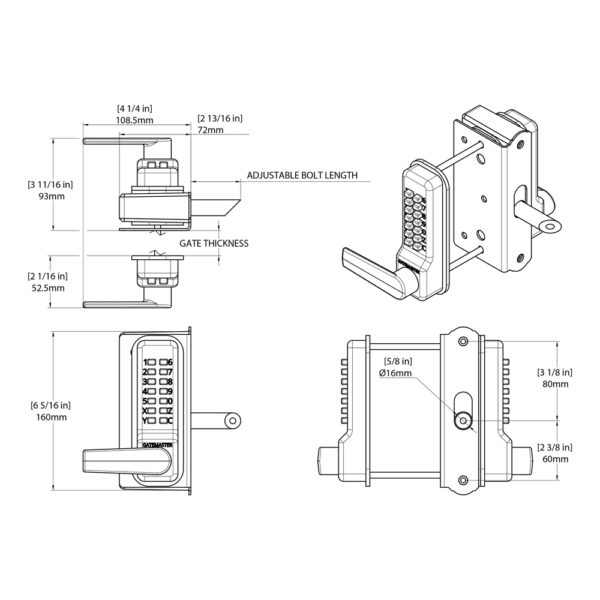 Fitted with our RapidReset mechanical keypad, this lock allows for fast, tool-free code changes without removing the unit from the gate. On the inside, a low-profile push pad offers smooth, intuitive exit—ideal for areas where ease of use and security are equally important.