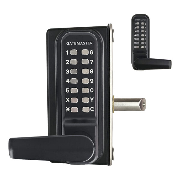 • Auto-latching – close the gate and the latch bolt latches into the gate frame. To open the gate – enter the code and turn the handle