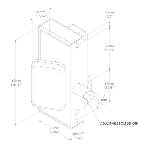 - Available in two sizes – 1030 for 10 to 30mm flat bar or box section gate frames and 4060 for 40 to 60mm gate frames