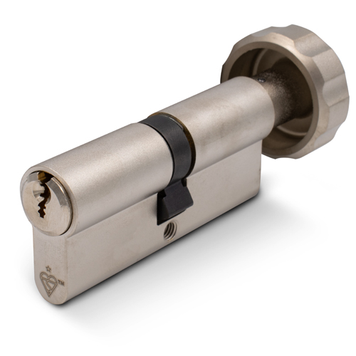 This is the pExtra Plus TS007 1* euro key & thumbturn cylinder and features the Duffell’s restricted profile. The thumbturn is on the 1st size & the keyway is on the 2nd size.