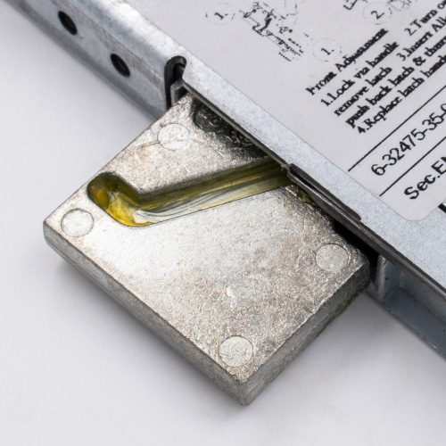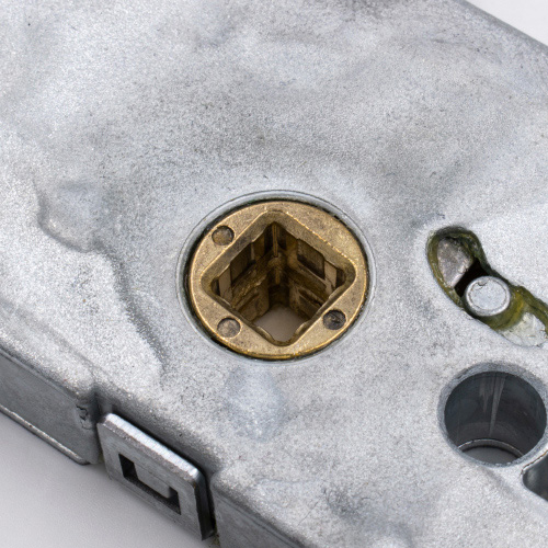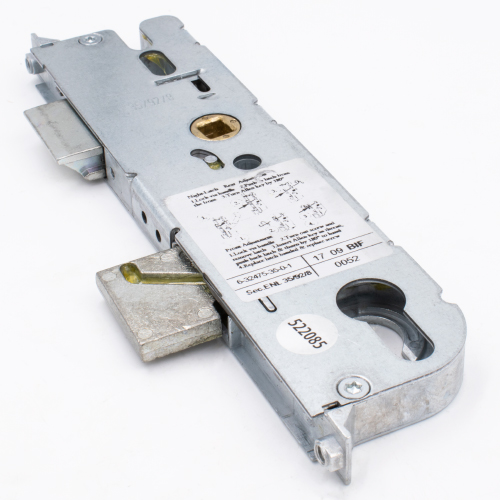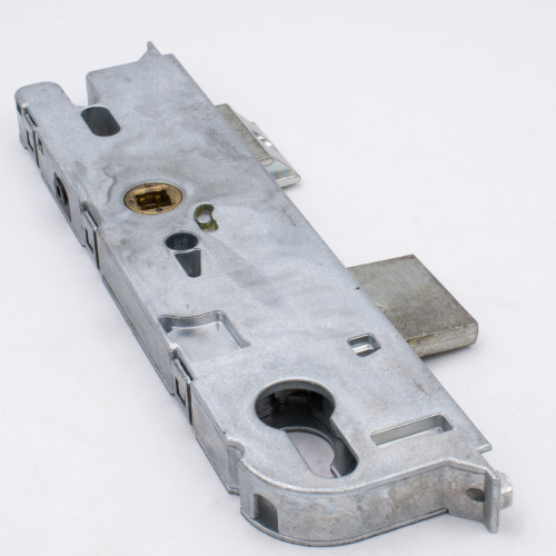New-style GU locks can be differentiated from their old-style equivalents by the shape at the top of the gearbox. Old-style locks have the top corner removed, whereas new versions feature a vertical groove to help with bolts for handles. The two gearboxes are not compatible, so a new-style gearbox will not fit on an old-style multipoint lock.