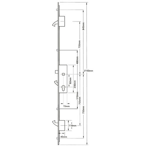 However, part: FUXL3H4R35 is a potential alternative. We’d recommend the Fullex FUXL3H4R35 as the closest replacement for this lock. The Fullex is a 35mm backset, split spindle lock with a hook in the central gearbox. The external hooks and outbound rollers match up, with a little adjustment. The inboard rollers are approximately 300mm further apart, so the keeps will need to be moved.