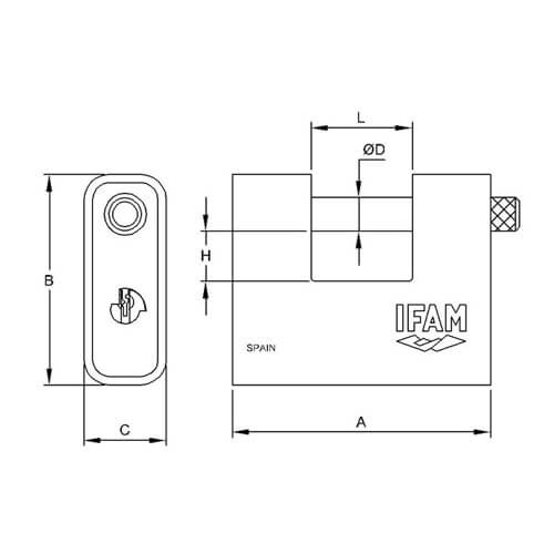 The Ifam Armoured Series padlocks are characterised by thesteel armour that surRounds the brass body of these shutter padlocks. TheArmoured padlocks are available in 3 sizes and are perfect for closinggates, fences, lifting gates, commercial shutters, as well as for usewith IFAM chains.