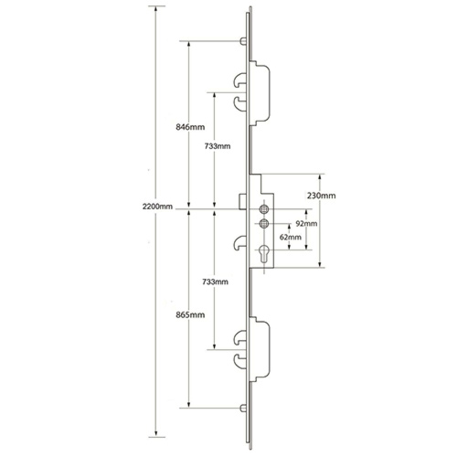 This Ingenious Duplex multipoint door lock features 2 Rollers 5 Hooks & 1 Latch.