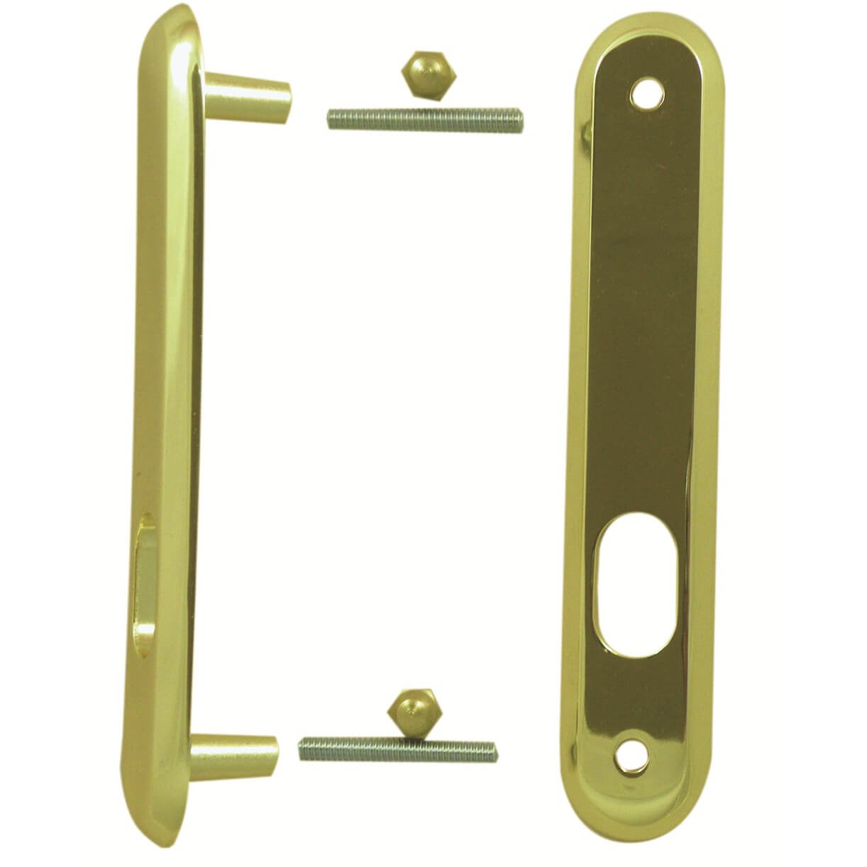 These Oval keyhole door reinforcement plates are designed to reinforce and strengthen the area around the mortice lock on wooden doors. Fitting a mortice deadlock, or sashlock involves removing wood and this leaves a very weakened area around the mortice lock. The LockGuard plates are bolted together through the door – to resist an attack and therefore help avoid a burglary. Part of the LockGuard is also visible from outside and this provides an excellent visual deterrent.