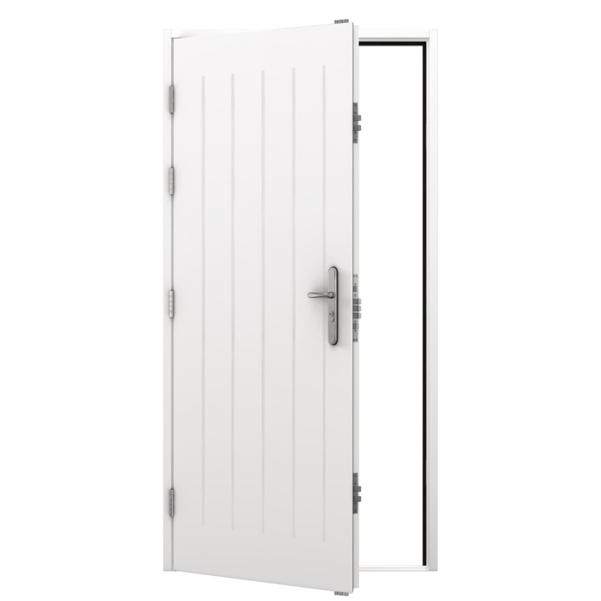 A modern Cottage style steel door featuring our trademark Hooply 19-point locking mechanism. Fully galvanised, pre-assembled door & frame with mineral wool infill, multi-point locking, handles, cylinders and seals.