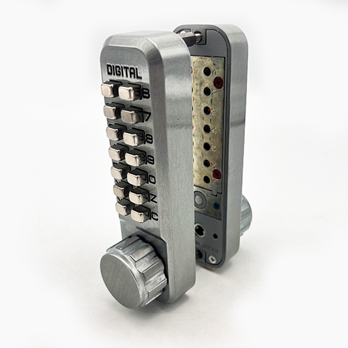 Low duty digital door locks with mortice tubular latches, back to back plates and noholdback. This version has code lengths of 4-6 digits, with 2000+ possible code combination options.