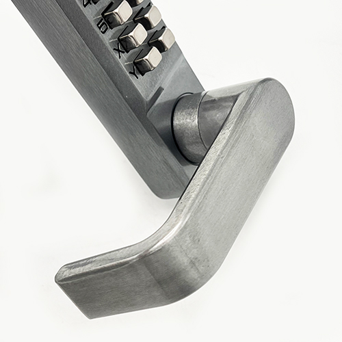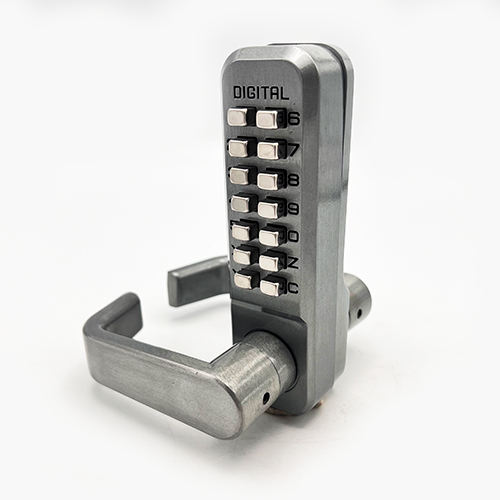 Low duty lever handle digital door locks with mortice tubular latches withholdback and free passage function. This version has code lengths of 4-6 digits, with 2000+ possible code combination options.
