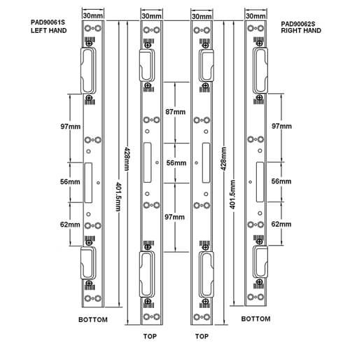 Please note that some older versions of Lockmaster locks may have locking point locations in slightly different places. That may require the routing prep on the door to be enlarged by 40-50mm to accommodate the revised locations and for the keeps to be repositioned.