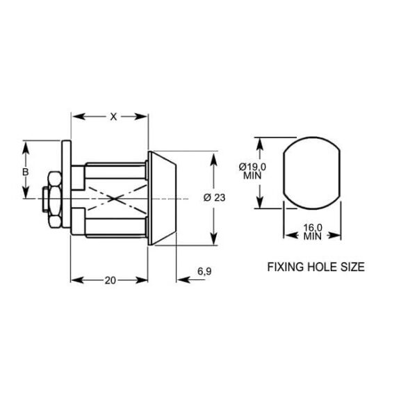 This L&F 2106 chrome-finished cam lock uses a nut fix fixing.