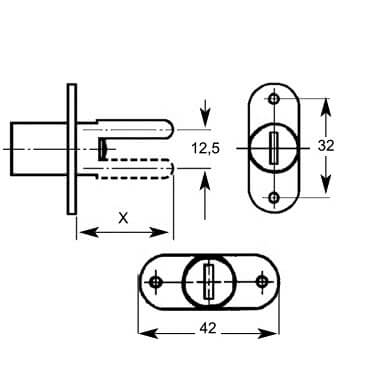 Lowe & Fletcher 5841 Horizontal Pedestal Furniture Lock 45mm Pin
