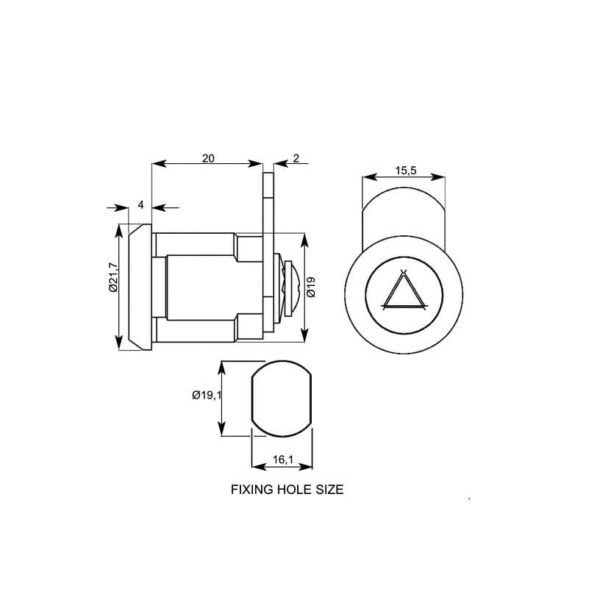 This L&F C073 chrome finished cam lock uses a nut fix fixing.