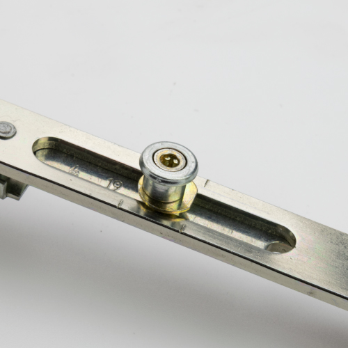 A Maco reverse action bottom shootbolt with a mushroom cam for use with Maco multipoint locks with serrated drive rods.