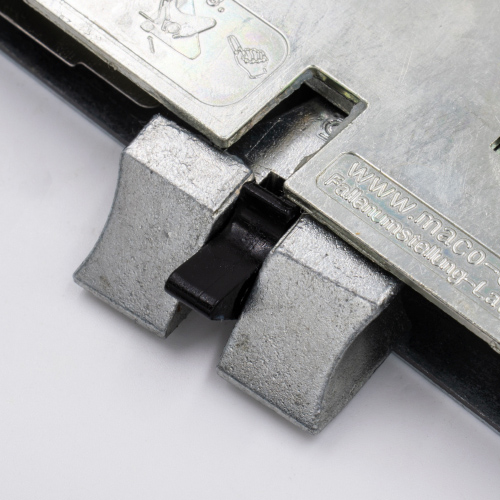 Maco Protect C-TS locks have a distinctive rounded shape to both the main gearbox and the hook boxes. The main gearbox corner, next to the euro cut out is particularly rounded.