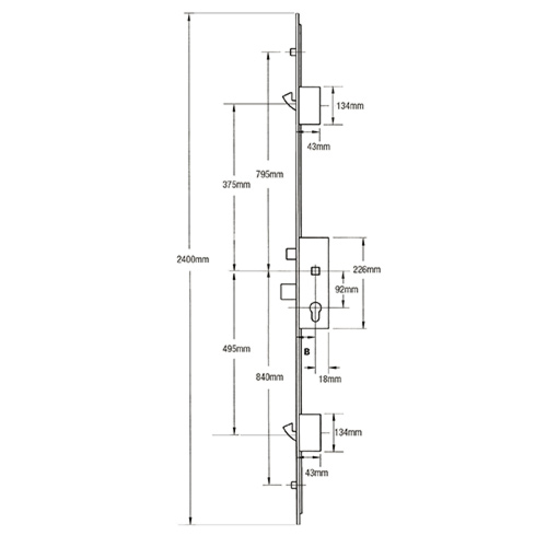 These locks can be used to replace the old 56231 and 233051 Maco G-TS locks which are no longer manufactured. Our part codes for those are MA53500, MA53501 and MA53502 (lever/lever only). You may find that some adjustments to the keep positions is required. This lock measures 375mm from the spindle to the centre of the top hook and 495mm from the spindle to the bottom hook. Rollers are 795mm to the top and 840mm to the bottom from the spindle.