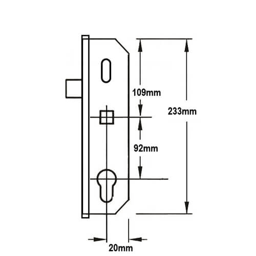 Despite the various backsets and operation options, the dimensions of Mila gearboxes are largely the same. They measure 233mm high by the backset + 20mm wide. The latch measures 20mm high, the deadbolt is 30mm high and there is 80mm between the bottom of the latch and the top of the deadbolt.