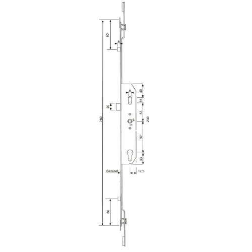 Mila Centre Section Latch 2 Rollers Lift Lever Multipoint Door Lock