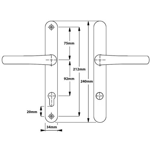 These handles from the ProSecure range, which are available in various finishes, have sprung 92pz levers on a backplate 240mm in length and 35mm wide.