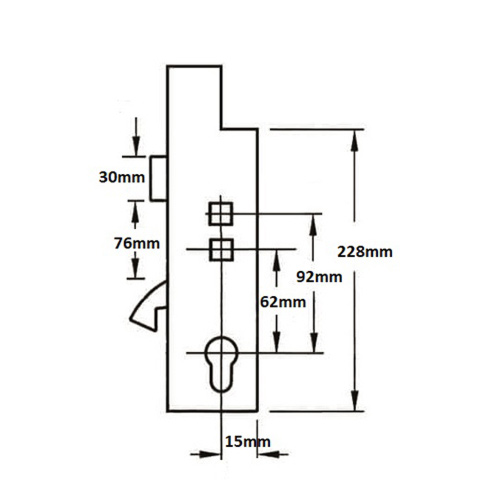 Origin gearboxes have a distinctive double spindle arrangement with centres at 62mm and 92mm. Both followers are unsprung so we’d recommend the use of sprung door furniture. The top corner of the gearbox is also cut out.