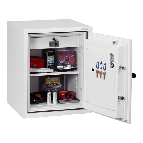 FITTINGS – Each safe comes complete with height adjustable shelf and lockable cash/valuables drawer.