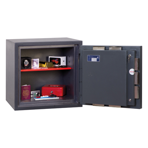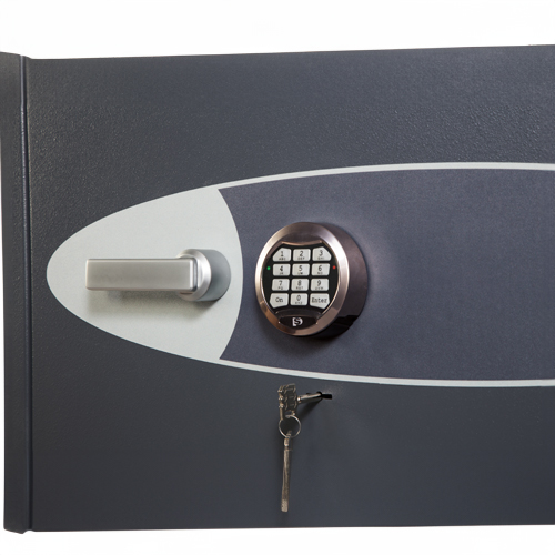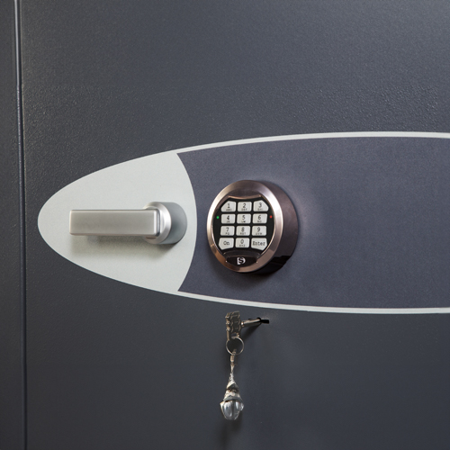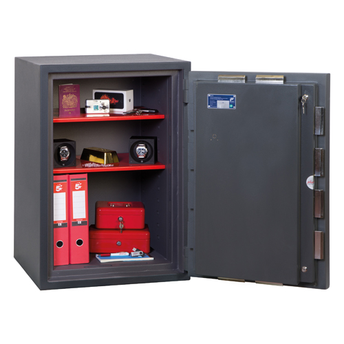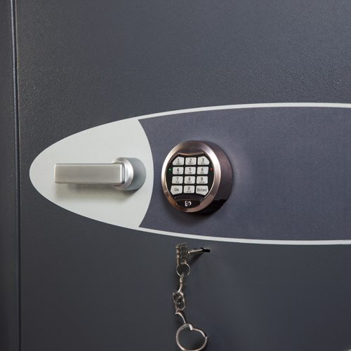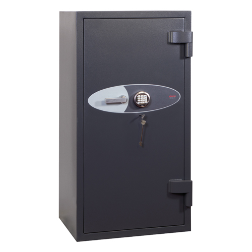 LOCKING: HS9070E – Fitted with a high security VdS Class II electronic lock with dual control, master code & time delay + a high security double bitted VdS Class II key lock.