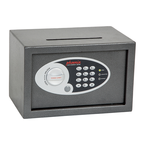 The Phoenix Vela SS0800 Series is designed for use at home or in the office for storage of valuables, cash and important documents. With its high quality key-lock or user friendly electronic lock it is ideal for multiple applications.