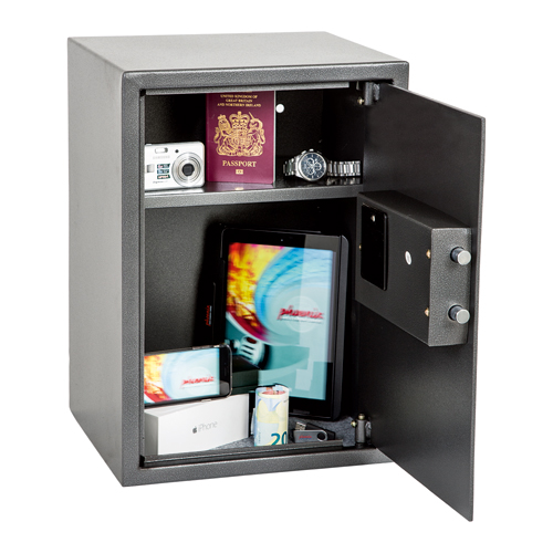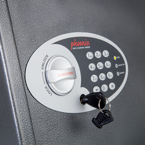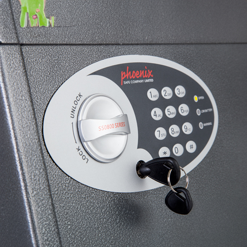 The Phoenix Vela SS0800 Series is designed for use at home or in the office for storage of valuables, cash and important documents. With its high quality key-lock or user friendly electronic lock it is ideal for multiple applications.