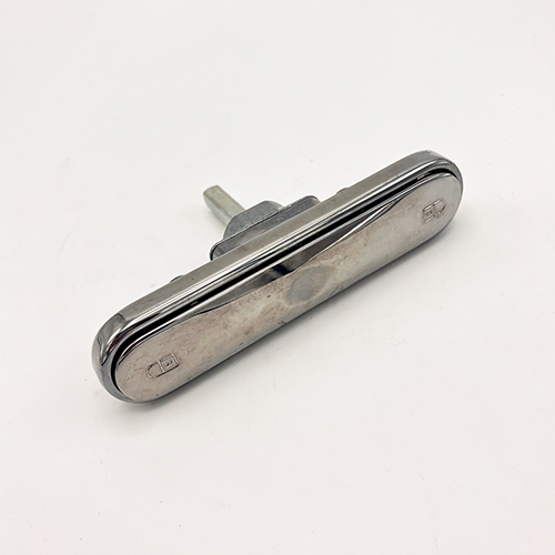 The T-shaped lever handle pops-out from its back plate for operation, offering a flush fit when closed. This version is the non-locking handle.