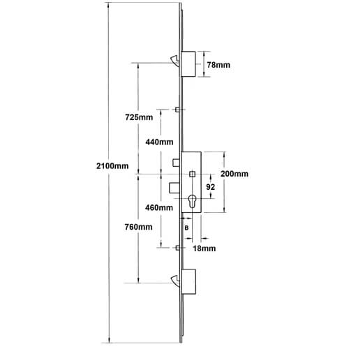 This Schuring 2 hook, 2 roller lock features classic 1485mm locking point centres.