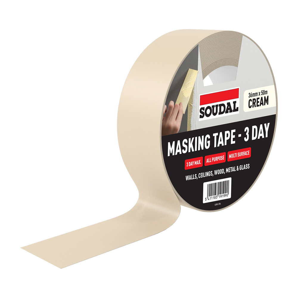 Masking Tape (3 Day) is a general purpose tape with delicate adhesion, ideal for masking on most materials and surfaces. Effectively protects from paint, ideal for use on walls, ceilings, wood, metal and glass. Designed to be adhered on surfaces for up to 3 days.