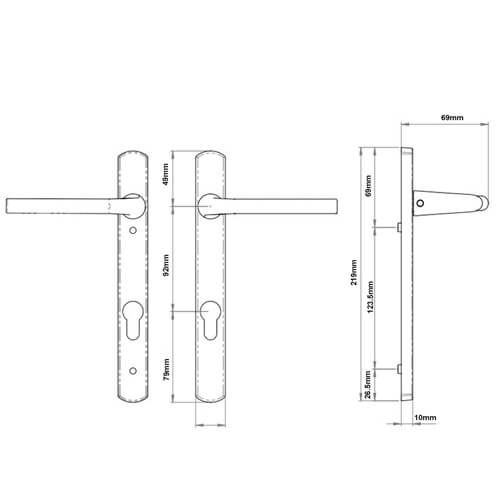 Straight Lever Lever UPVC Multipoint Door Handles – 92mm PZ Sprung 122mm Screw Centres