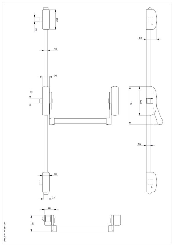 Suits doors up to 1050mm wide, longer crossarms are available for wider doors upto 1450mm wide and 2585mm high. Longer rods are available to suit doors upto 3150mm high. Supplied with strikers for timber or metal doors as standard – strikers for PVCu available separately.
