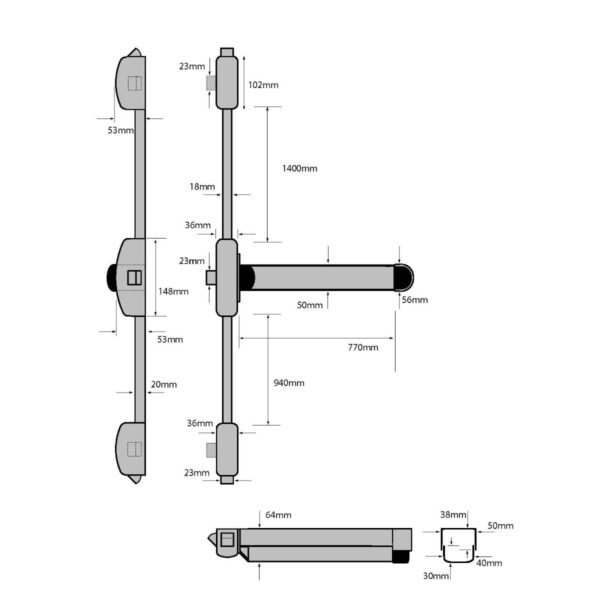 Comprises a touch bar, modular mechanism and covered connecting rods and horizontal latching pullman latches at the top and bottom. Comes complete with dogging as standard (can be supplied without if required). The dogging (hold-back) facility should not be used on fire/smoke door assemblies but fine for escape doors.